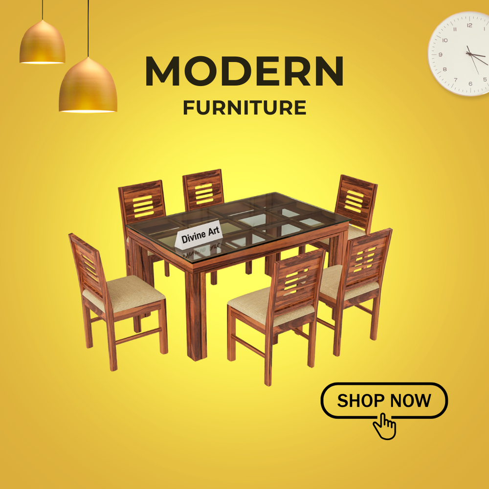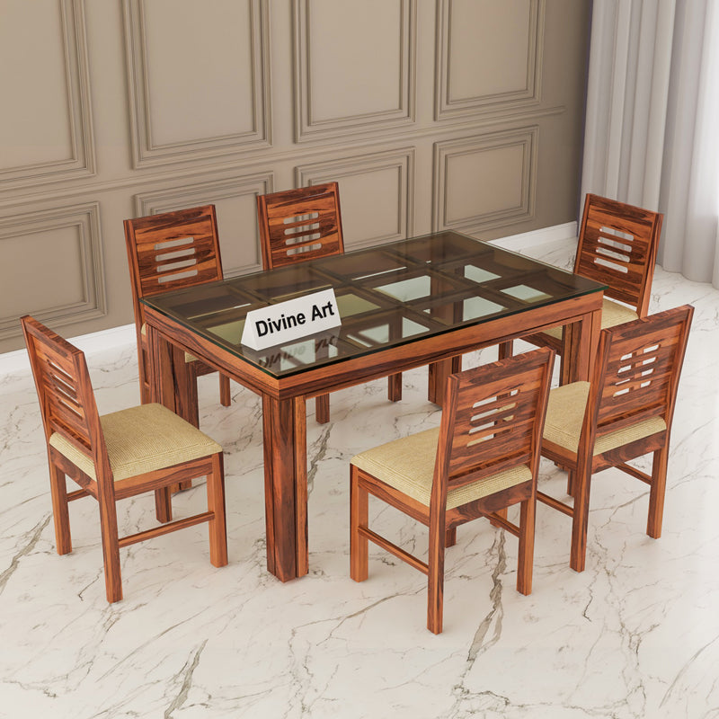 Omnira 6 Seater Round Solid Wood Glass Top Dining Table Set