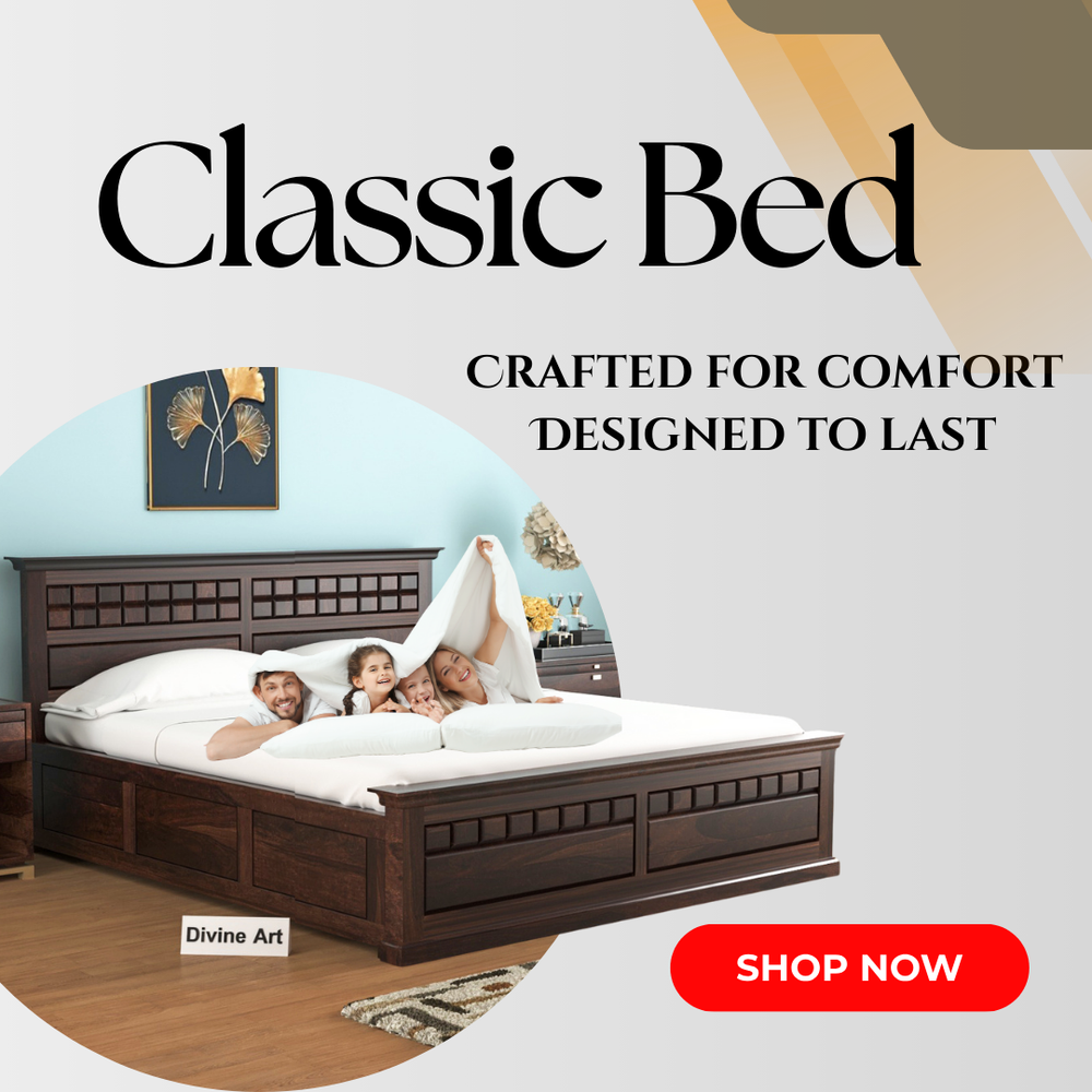 Vireth Solid Sheesham Wood Queen Size Bed with Storage